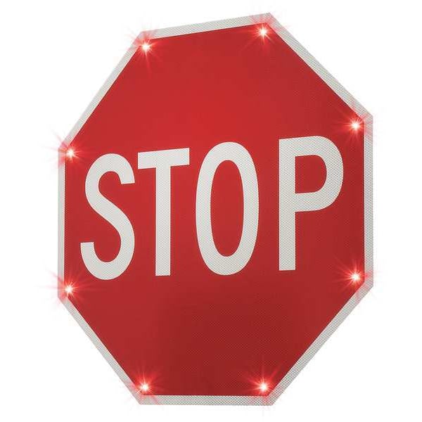 LED Stop Sign, LED Sign Type Flashing Traffic Control Sign, Sign Legend Stop, Sign Header Text Color White, Sign Legend Style Text, Background Color Red, MUTCD Compliant Sign Yes, MUTCD Code R1-1, MUTCD Sign Description Stop