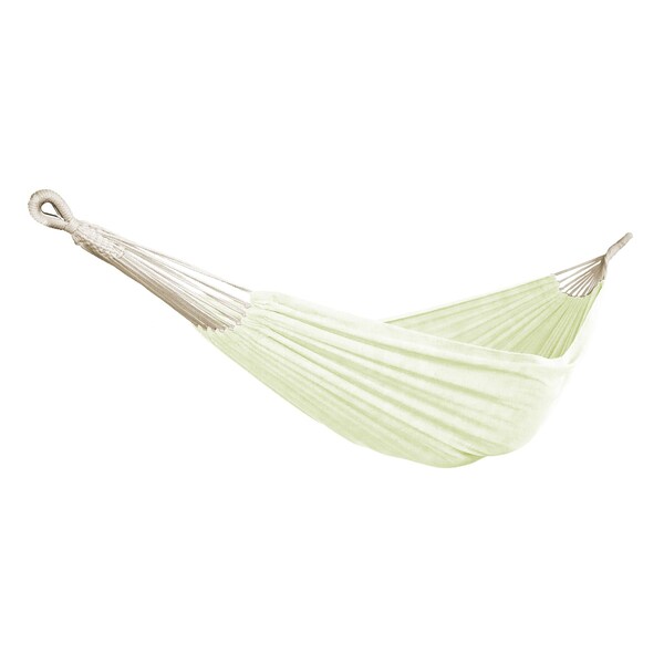 Imagine yourself in a tropical paradise while you relax the day away! This series of Bliss Hammocks features hardwood spreader bars, fun stripe colors, sturdy construction and a matching pillow. The best part of this hammock is the hardwood spreader bars that keep the hammock stretched wide open so it always feels like you are resting on full size bed. This oversized hammock has a bed size of 48" W x 78" L with an overall length of 9.5'. Eco-friendly colorfast polyester/cotton blended fabric provides long lasting vivid colors and makes this hammock perfect for long naps and ultimate relaxation. It is available in a wide variety of vibrant colors. All Bliss Hammocks ropes are made from strong eco-friendly recycled cotton with steel reinforced loops that offer durability. Comes with hanging hardware including a set of chains and S hooks that are coated to resist weathering. It has a 250 lbs. weight capacity