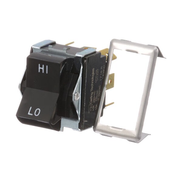 Rocker Switch, 3Pdt, Black, 9Ea 1/4" Tabs, ;Black Rocker W/Chrome Bezel, On/On, "Hi-Lo", ;Rocker, 7/8" X 1-1/2", 3Pdt,;15A/125V,10A/250V, 9 (1/4" Tabs);Blodgett Dfg 100, 200