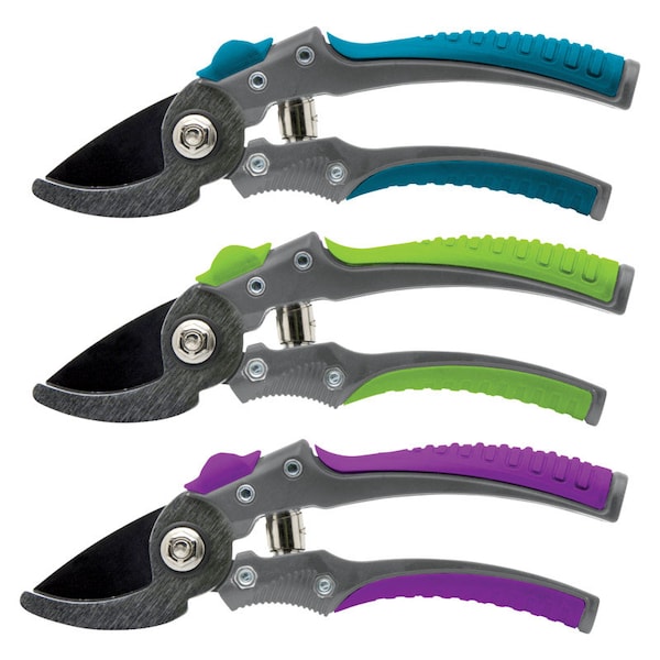 Bloom bypass pruner, aluminum bypass pruner, carbon steel blade, aluminum body with comfort grip.