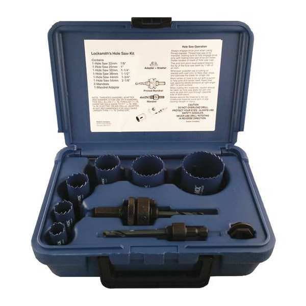 Locksmith Bi-Metal Hole Saw Kit,9 pcs., Impact Rated No
