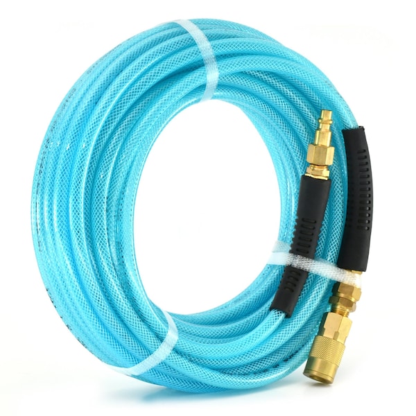 BluBird Braided Polyurethane hoses are great for outdoor and indoor use. Having great cold weather flexibility, being lightweight and non-marking, these hoses outperform nylon hoses. They feature bend restrictors to protect the revolving fittings that are on both ends of the hose.