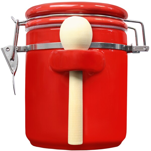 33oz Ceramic Airtight Food Storage Kitchen Canister with Spoon, Red