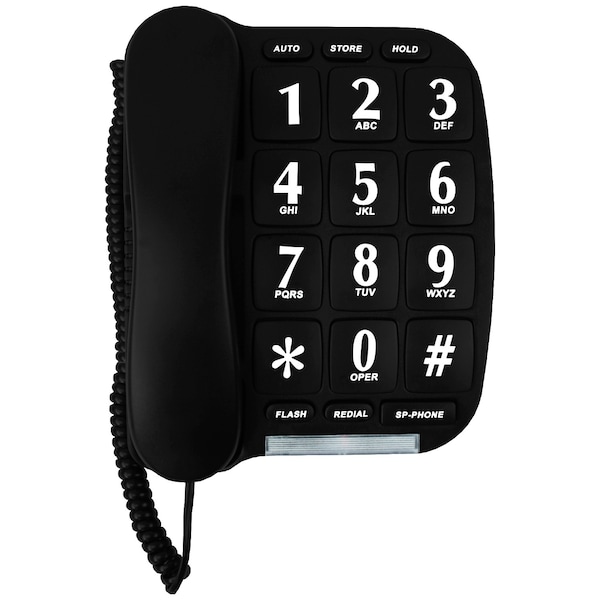 Black Big Button Phone for wall or desk with Speaker and Memory
