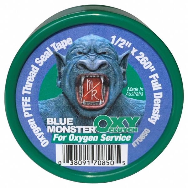 Thread Sealant Tape, Specific Sealing Application For Oxygen Systems, Series OXY-Clutch, Overall Width 1/2 in, Overall Length 21 ft, Minimum Operating Temperature -450 Degrees F, Maximum Operating Temperature 500 Degrees F, Maximum Operating Pressure for Liquids 10,000 psi, Maximum Operating Pressure for Gases 2,174 psi, Maximum Linear Density 1.5 g/cc, Minimum Linear Density 1.5 g/cc, Color Green, Tape Type Pipe Thread Sealant Tape, For Maximum Thread Diameter 1 1/2 in