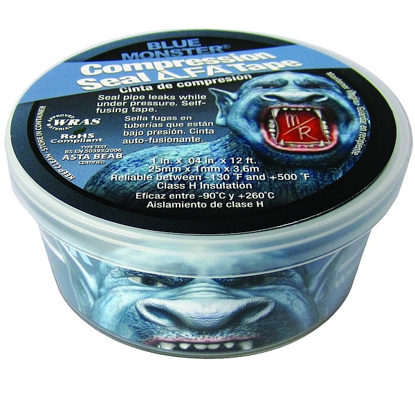 Tape Thickness 40 mil, Tape Brand Blue Monster, Common Industry Construction, HVAC/R, General Maintenance and Repair, Indoor/Outdoor, Imperial Tape Length 4 yd, Imperial Tape Width 1 in, Maximum Tape Performance Temperature 500 Degrees F, Minimum Tape Performance Temperature -130 Degrees F, Continuous Roll, Series Not Applicable, Tape Backing Material Not Applicable, Tape Adhesive Material Silicone, Tape Sub-Type Self-Fusing Tape, Duct and Repair Tape, Adhesion to Steel 12.25 oz/in