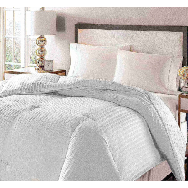 350 Thread Count Down Fiber Damask Stripe Comforter, White, Full/Queen