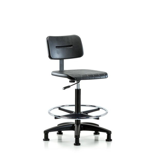 Basic Poly Hi Bench Chair, CF, Glides, Polyurethane, Chrome, 24-1/2" to 33-1/2" Seat Height