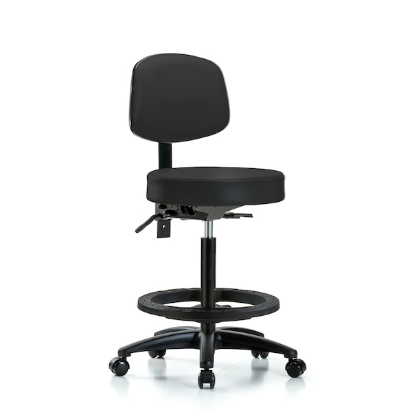 Bench Stool, Hi, Vinyl, Bk, BF, Casters, BLK