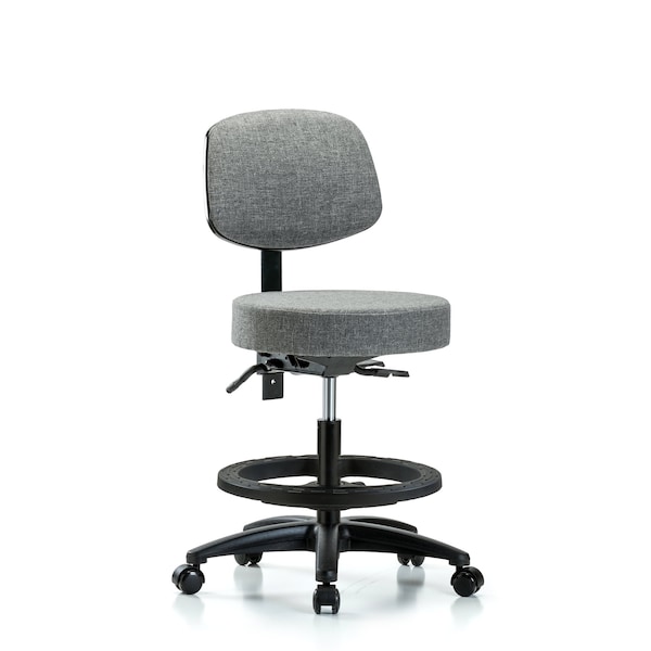 Bench Stool, Med, Fab, Bk, BF, Casters, Gry