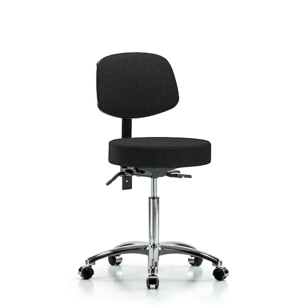 Bench Stool,Med,Fabric,Bk Chrom,Cast,Blk