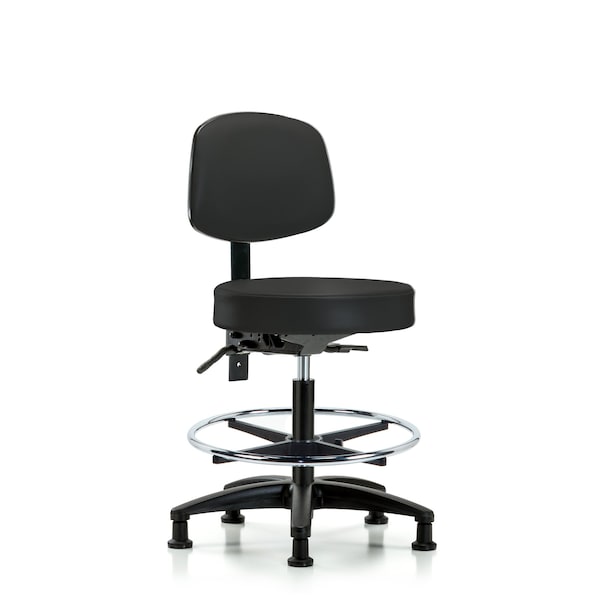 Bench Stool,Med,Vinyl,Bk,CF,Glides,BLK