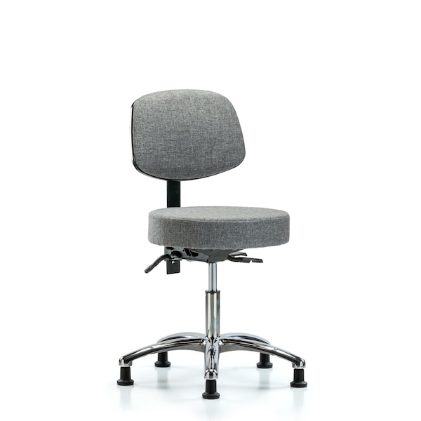 Desk Stool, Fabric, Bk Chrome, Glides, Gry