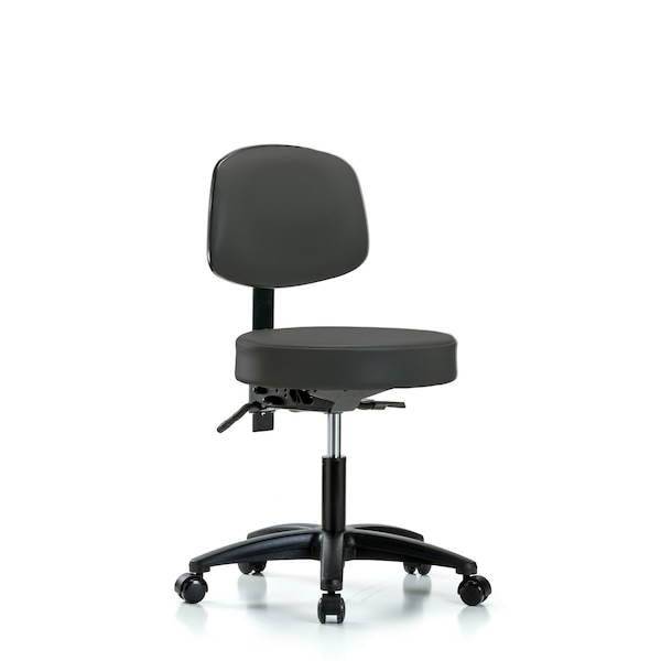 Desk Stool, Vinyl, Bk, Casters, Gry