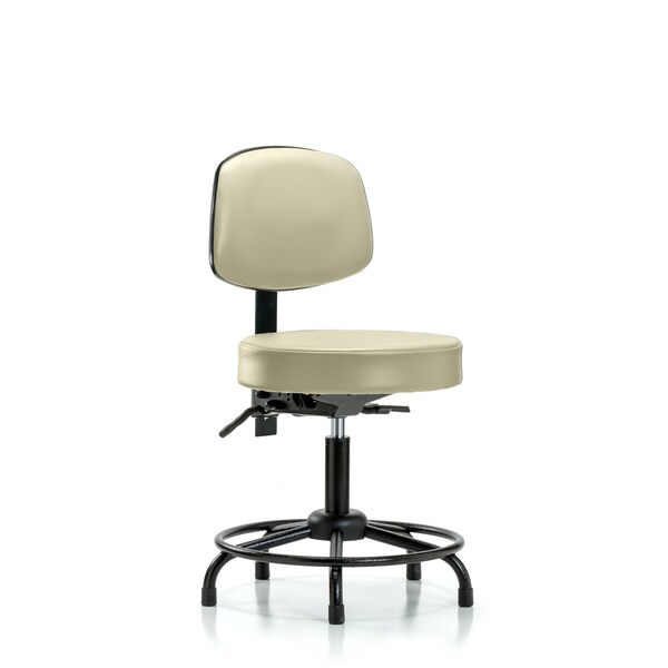 Desk Stool, Vinyl, Bk, RT, Glides, Wht