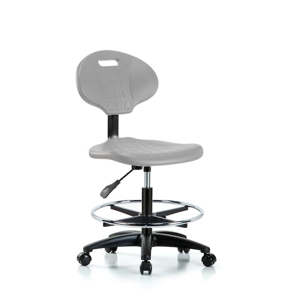 Erie Polyurethane Chair - Medium Bench Height with Chrome Foot Ring & Casters in Gray Polyurethane