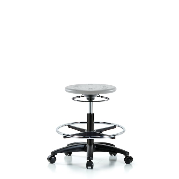 Huron Polyurethane Stool - Medium Bench Height with Chrome Foot Ring & Casters in Gray Polyurethane