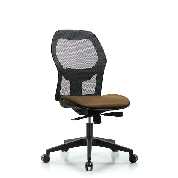 Executive Windrowe Mesh Back Chair is adjustable from 19-23 inches from the top of the seat to the floor and features adjustable lumbar support, comfort molded seat covered in Taupe Supernova Vinyl, and composite base with dual-wheel casters suitable for carpeted floors.