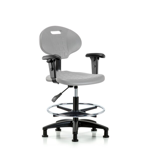 Poly Chair-Medium Bench Ht with Chrome Foot Ring, Adjustable Arms, &Stat Glides in Gray Poly