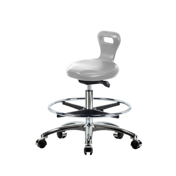 Poly Serpent Sit-Stand Stool Chr-Medium Bench Ht with Chr Foot Ring&Chr Casters in Gray Poly