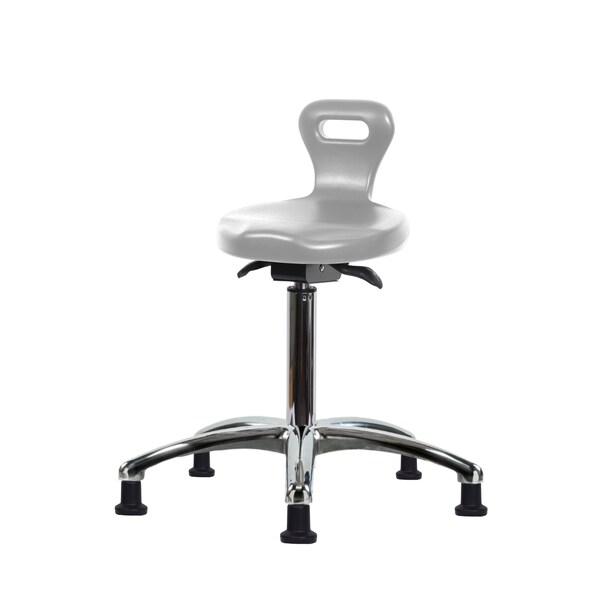 Poly Serpent Sit-Stand Stool Chrome-Medium Bench Height with Stationary Glides in Gray Poly