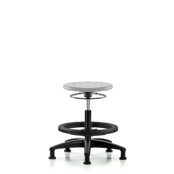 Poly Stool-Medium Bench Height with Black Foot Ring & Stationary Glides in Gray Poly