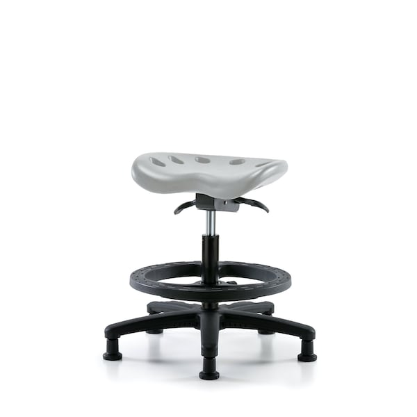 Poly Tractor Sit-Stand Stool-Medium Bench Ht with Black Foot Ring & Stationary Glides in Gray Poly