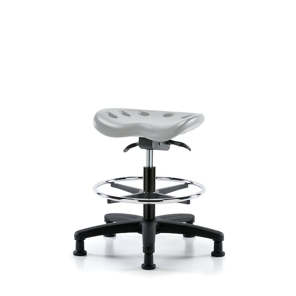 Poly Tractor Sit-Stand Stool-Medium Bench Ht with Chrome Foot Ring & Stationary Glides in Gray Poly