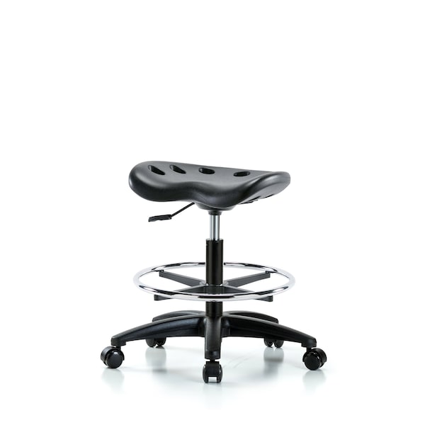 Poly Tractor Stool, Med Bench, Foot Ring, Chrome Casters, Black (Discontinued)