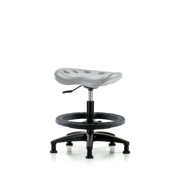 Poly Tractor Stool - Medium Bench Height with Black Foot Ring & Stationary Glides in Gray Poly
