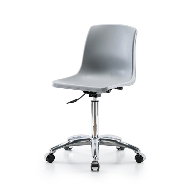Polypropylene Shell Chair Chrome - Medium Bench Height with Casters in Gray
