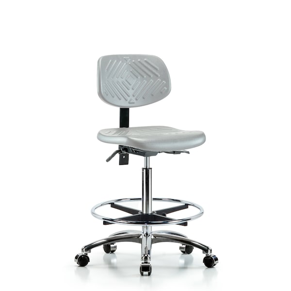 Polyurethane Chair Chrome - High Bench Height with Chrome Foot Ring & Casters in Gray Polyurethane