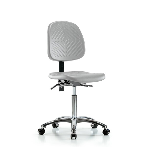 Polyurethane Chair Chrome - Medium Bench Height with Medium Back & Casters in Gray Polyurethane