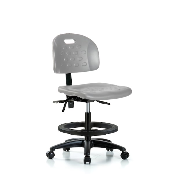 Polyurethane Chair - Medium Bench Height with Black Foot Ring & Casters in Gray Polyurethane