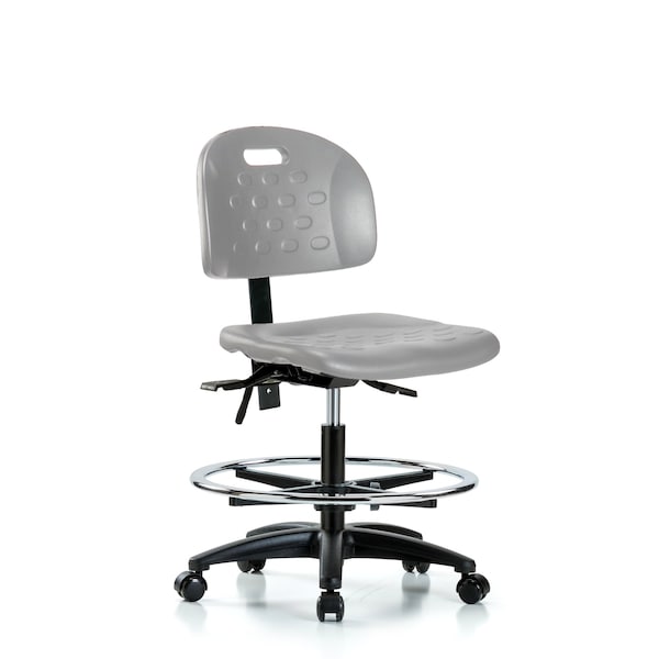 Polyurethane Chair - Medium Bench Height with Chrome Foot Ring & Casters in Gray Polyurethane
