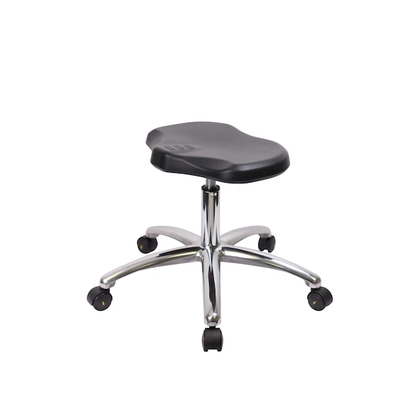 Polyurethane ESD Ray Stool Chrome - Desk Height with ESD Casters in ESD Black Polyurethane