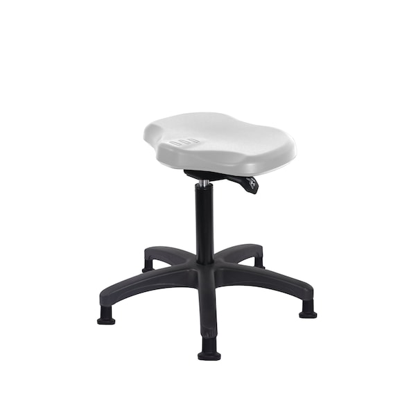 Gray Polyurethane Ray Sit-Stand Medium Bench Height Stool is adjustable from 19-26.25 inches from the top of the seat to the floor and features ergonomic adjustments such as seat height and locking seat tilt and black, nylon-reinforced fiberglass base with stationary, non-marring glides suitable for hard floors in chemical, soil, and puncture resistant polyurethane.