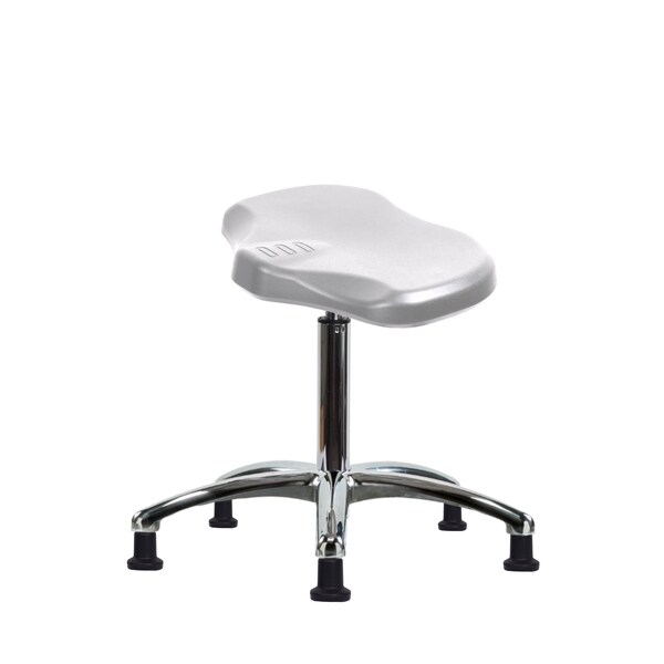Gray Polyurethane Ray Medium Bench Height Stool in Chrome is adjustable from 20-27.5 inches from the top of the seat to the floor and features ergonomic adjustments such as seat height and cast-aluminum base with stationary, non-marring glides suitable for hard floors in chemical, soil, and puncture resistant polyurethane.