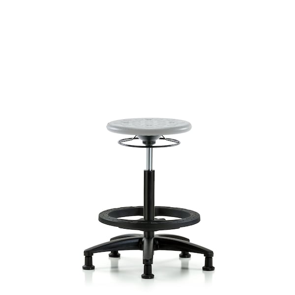Polyurethane Stool-High Bench Height with Black Foot Ring & Stationary Glides in Gray Polyurethane