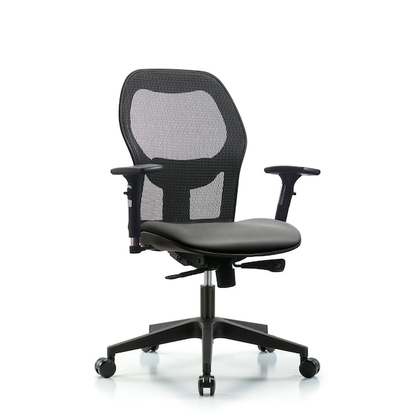 Executive Windrowe Mesh Back Chair is adjustable from 19-23 inches from the top of the seat to the floor and features adjustable lumbar support, comfort molded seat in Sterling Supernova Vinyl, 3D adjustable arm rests, and composite base with dual-wheel casters suitable for carpeted floors.
