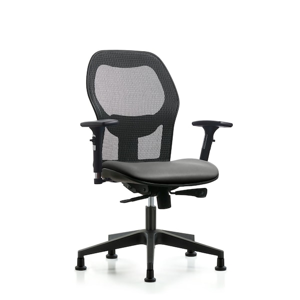 Executive Windrowe Mesh Back Chair is adjustable from 19-23 inches from the top of the seat to the floor and features adjustable lumbar support, comfort molded seat in Sterling Supernova Vinyl, 3D adjustable arm rests, and composite base with stationary glides suitable for both carpeted and hard floors.