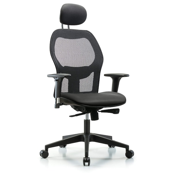 Executive Windrowe Mesh Back Chair is adjustable from 19-23 inches from the top of the seat to the floor and features adjustable lumbar support, comfort molded seat in Carbon Supernova Vinyl, 2-way standard adjustable arm rests, headrest, and composite base with dual-wheel casters suitable for carpeted floors.