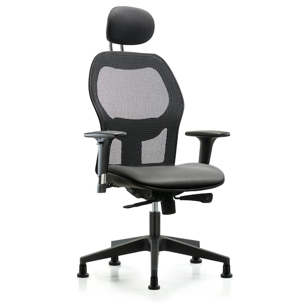 Executive Windrowe Mesh Back Chair is adjustable from 19-23 inches from the top of the seat to the floor and features adjustable lumbar support, comfort molded seat in Sterling Supernova Vinyl, 2-way standard adjustable arm rests, headrest, and composite base with stationary glides suitable for both carpeted and hard floors.