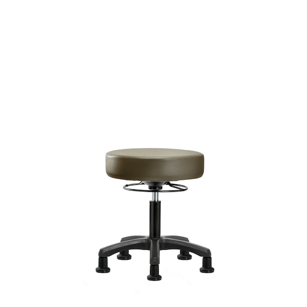 Vinyl Desk Height Mini-Stool is adjustable from 18-23 inches from the top of the seat to the floor and features ergonomic adjustments, including 360-degree, all-around control and black, nylon-reinforced fiberglass base with stationary, non-marring glides suitable for hard floors in antibacterial/antifungal Taupe Supernova vinyl.