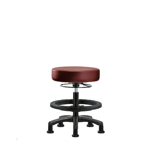 Vinyl Medium Bench Height Mini-Stool is adjustable from 27.75-27.75 inches from the top of the seat to the floor and features ergonomic adjustments, including 360-degree, all-around control, adjustable black foot ring, and black, nylon-reinforced fiberglass base with stationary, non-marring glides suitable for hard floors in antibacterial/antifungal Borscht Supernova vinyl.