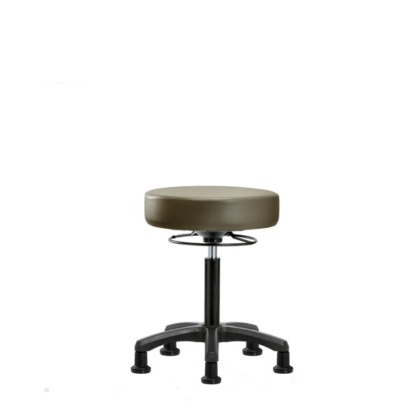Vinyl Medium Bench Height Mini-Stool is adjustable from 27.75-27.75 inches from the top of the seat to the floor and features ergonomic adjustments, including 360-degree, all-around control and black, nylon-reinforced fiberglass base with stationary, non-marring glides suitable for hard floors in antibacterial/antifungal Taupe Supernova vinyl.