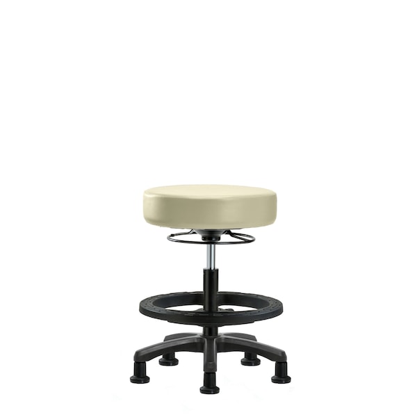 Vinyl Mini-Stool-Medium Bench Ht with Black Foot Ring&Stat Glides in Adobe White Trailblazer Vinyl
