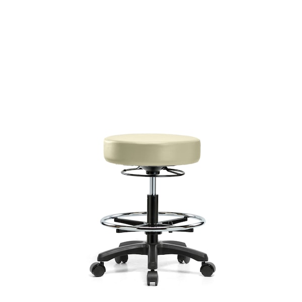 Vinyl Mini-Stool-Medium Bench Ht with Chrome Foot Ring & Casters in Adobe White Trailblazer Vinyl