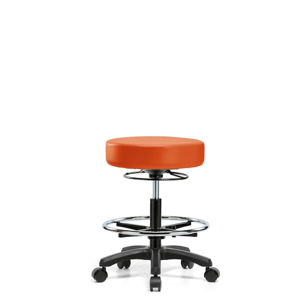 Vinyl Mini-Stool-Medium Bench Ht with Chrome Foot Ring & Casters in Orange Kist Trailblazer Vinyl