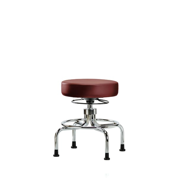 Vinyl Medium Bench Height Screw-Lift Stool is adjustable from 20.5-28 inches from the top of the seat to the floor and features a manual classic screw-lift height adjustment and chrome 4-legged base with fixed foot ring and stationary, non-marring glides suitable for hard floors in antibacterial/antifungal Borscht Supernova Vinyl.